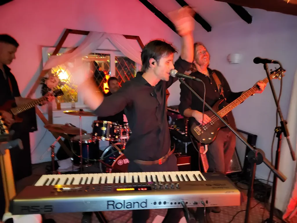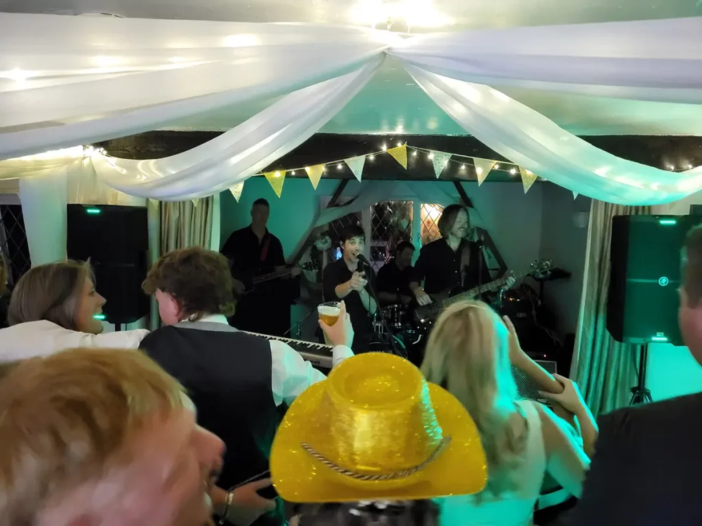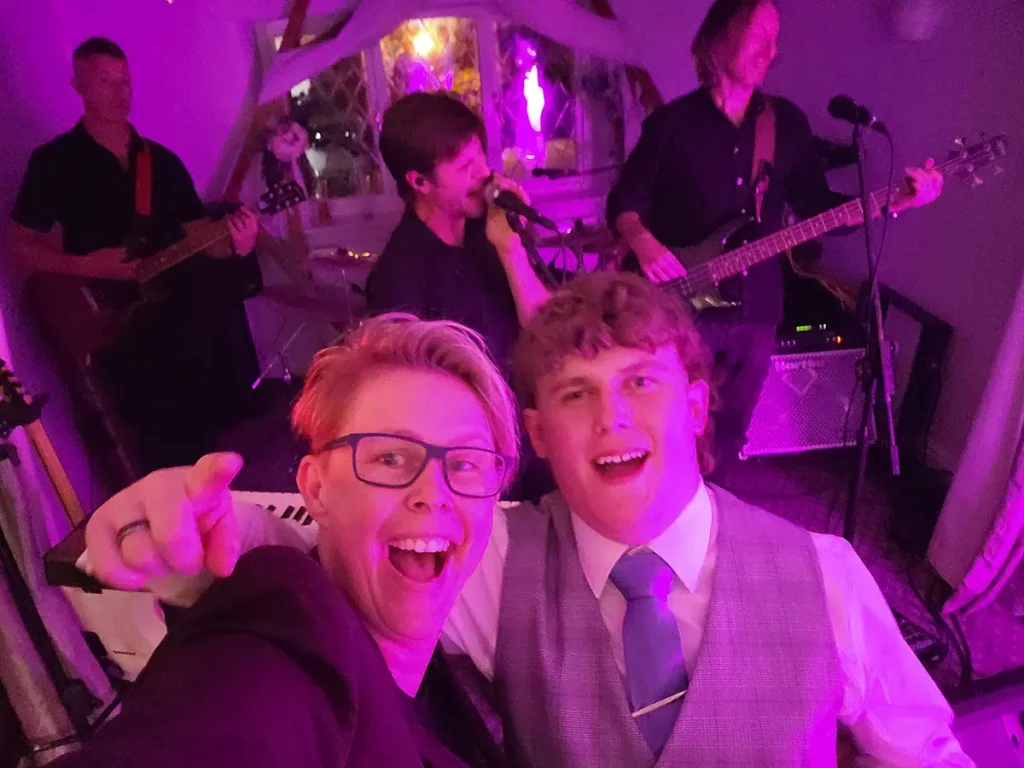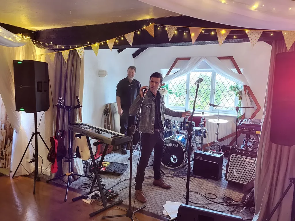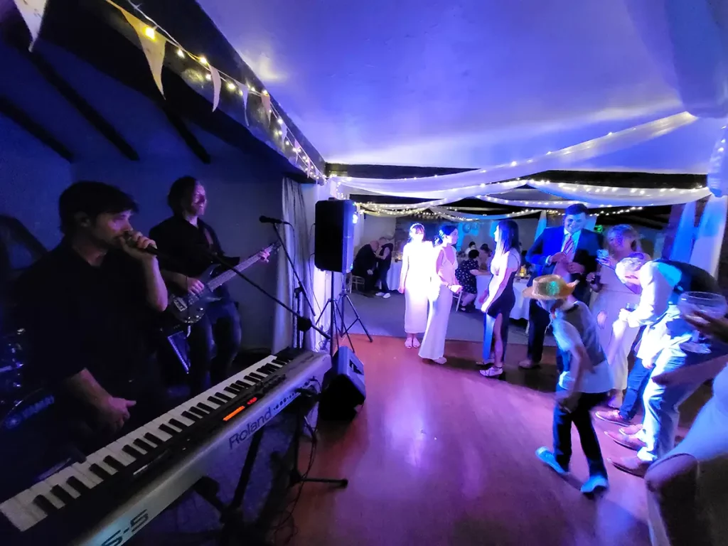 Set 2 opened with Take Me Out, followed by Valerie and Shut Up and Dance. Then we were joined on “stage” by wedding guest Jake for Proud Mary. Ben and Jake put together some fabulous harmonies and really elevate the tune. With that one in the bag it was time to rock out with I Believe in a Thing Called Love. The dance floor was full throughout the second set and we rounded things off with Can’t Take My Eyes Off You and Seven Nation Army.