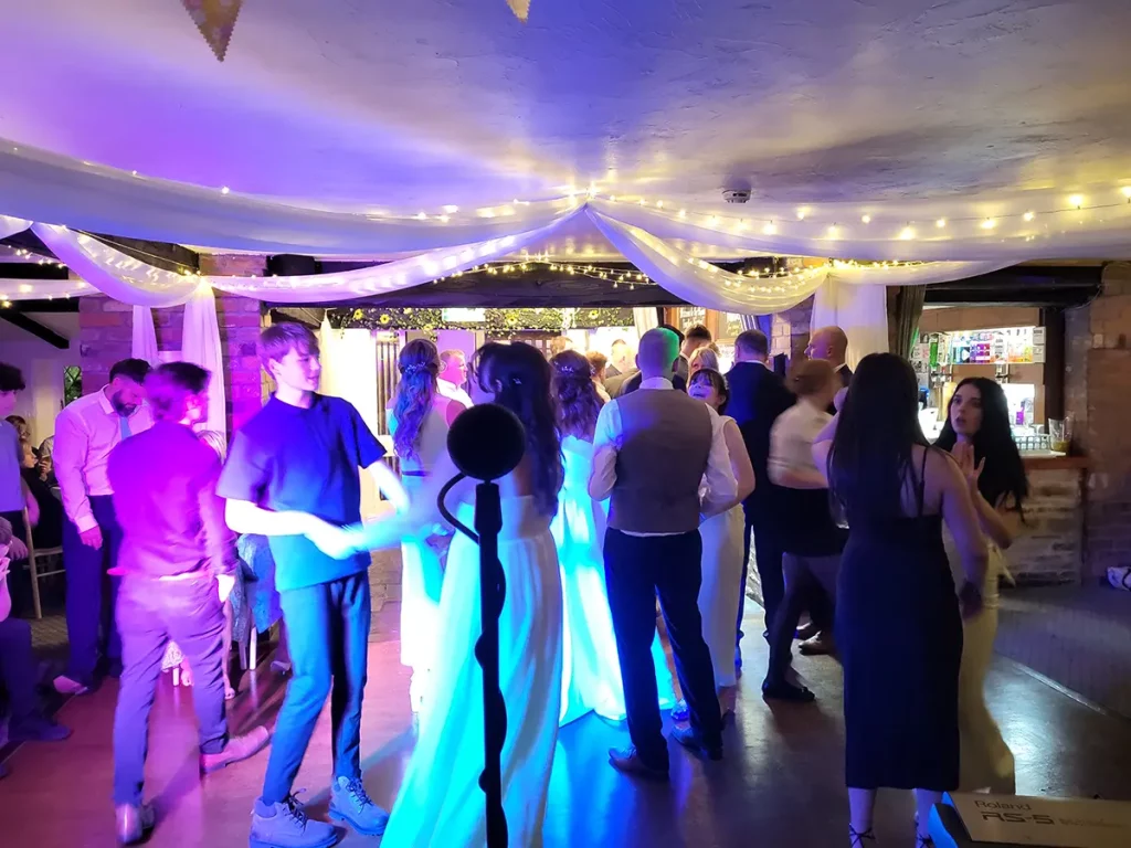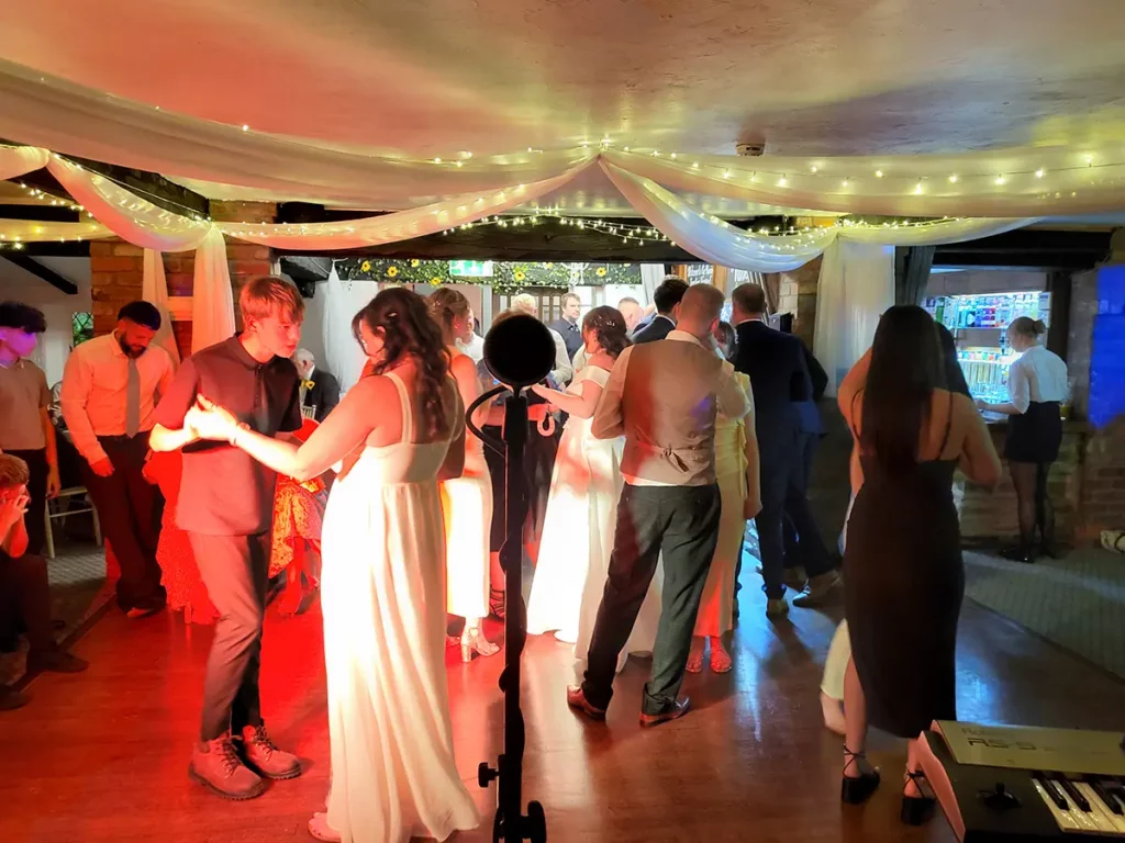 Andy arrived at 5:30, followed shortly by Ben. Set up and sound check was a relaxed affair and we were ready to go long before our 7pm deadline. I announced the cake cutting at 7 and then invited the bride and groom onto the dance floor for the first dance. They had chosen Sweet Dreams by the Last Shadow Puppet, a slow, crooning number from the Alex Turner factory. Ben slicked his hair in homage to the Sheffield front man’s look.