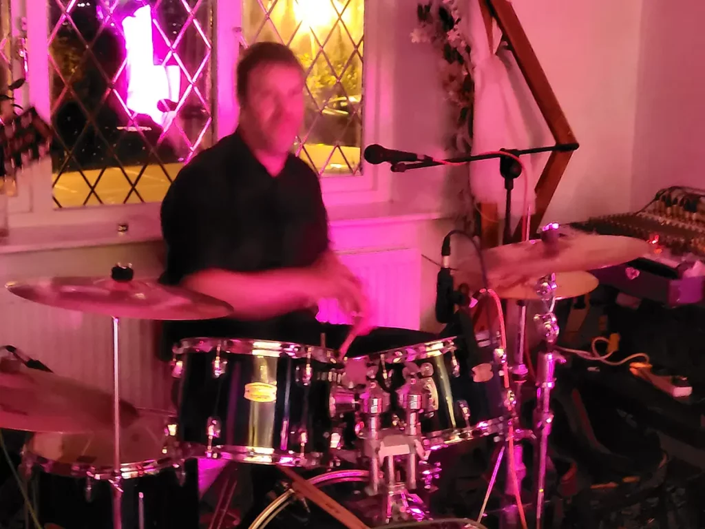 The first dance was scheduled for 7pm so I arrived to set up the band, a little before 5pm. The friendly staff pointed me in the direction of an alcove, next to the dance floor where the band would be ensconced. Arriving a bit early gave me the opportunity to secure space for the mixing desk and my array of speakers, before someone stuck a hi-hat stand in it, or some other piece of percussion paraphernalia.