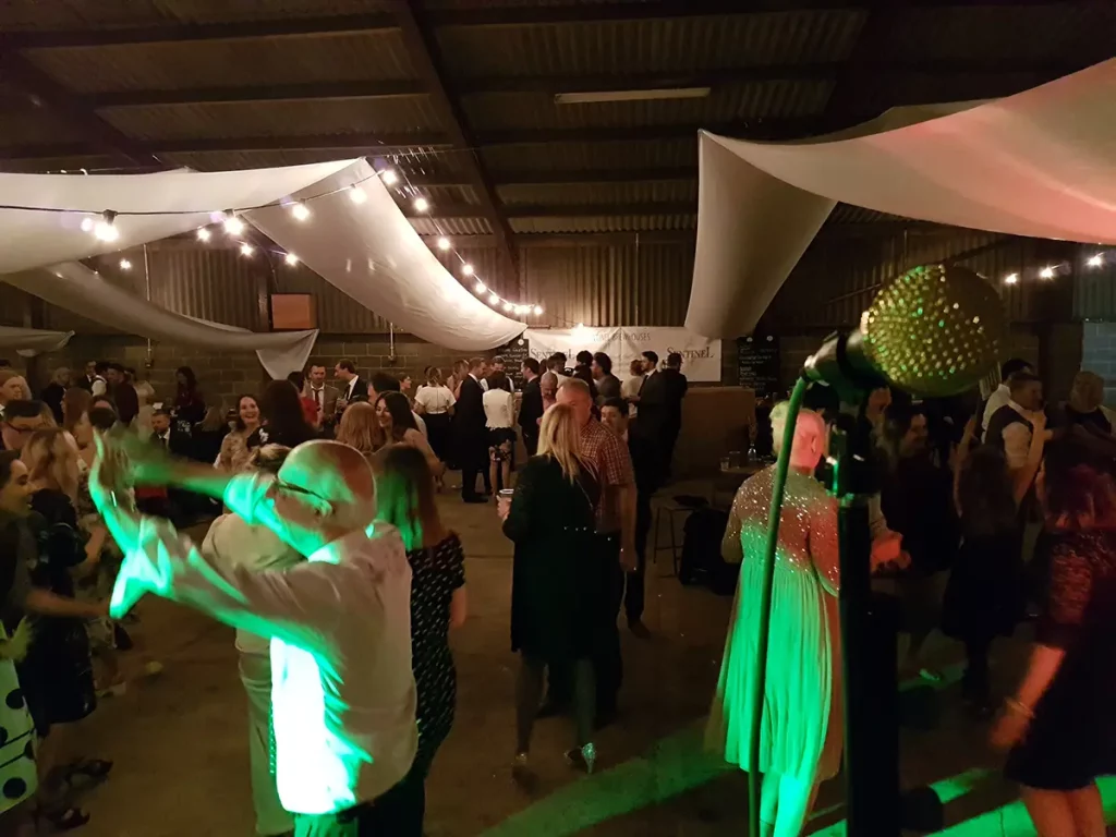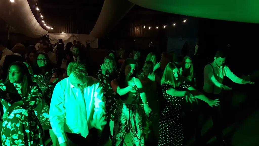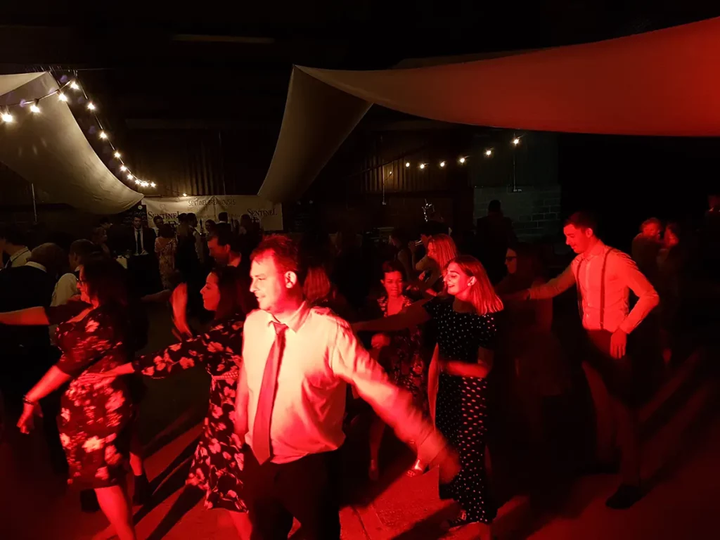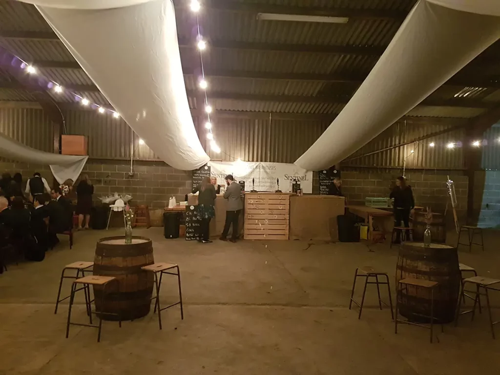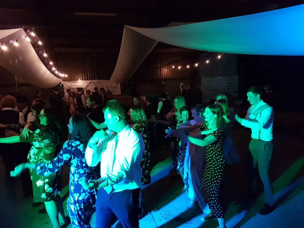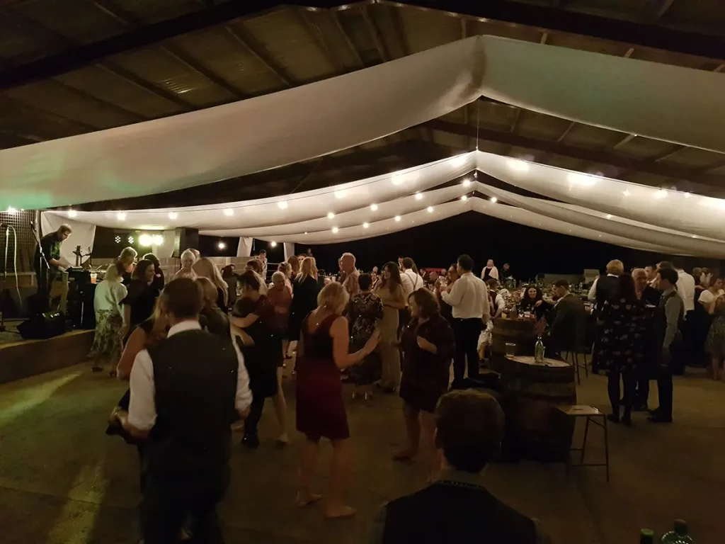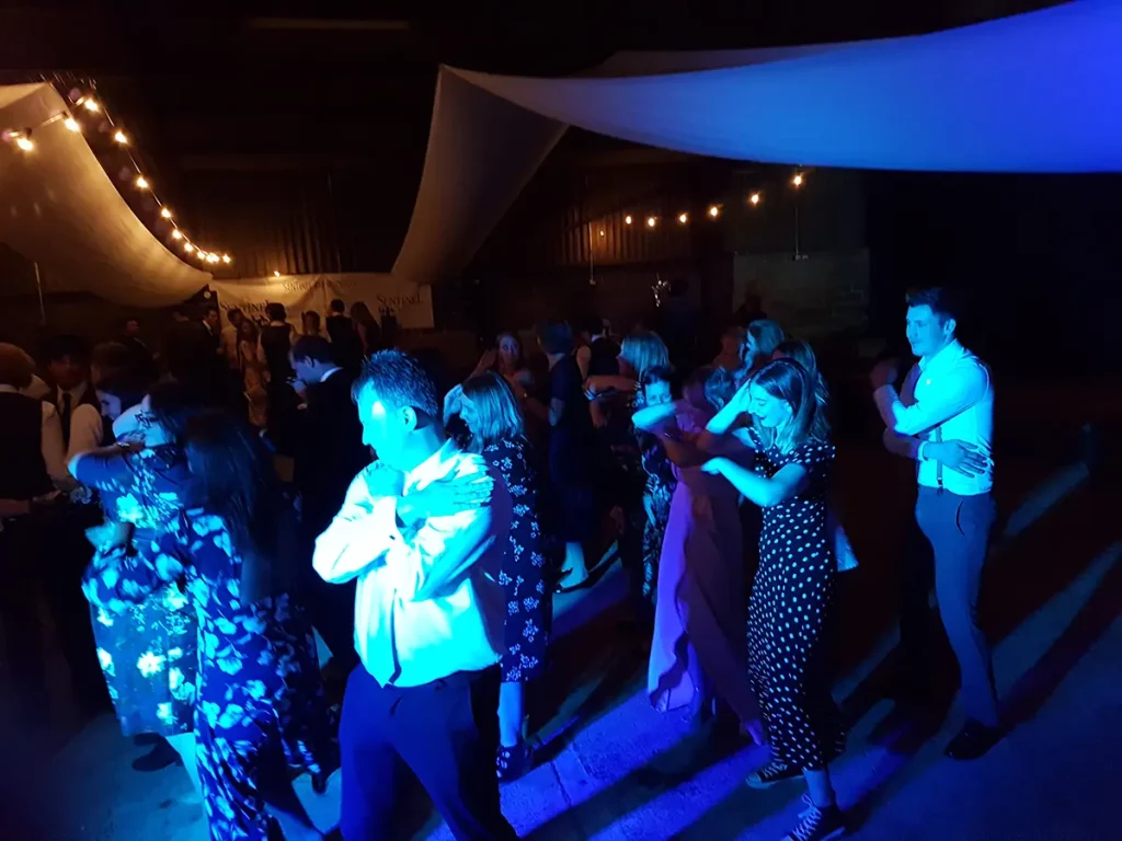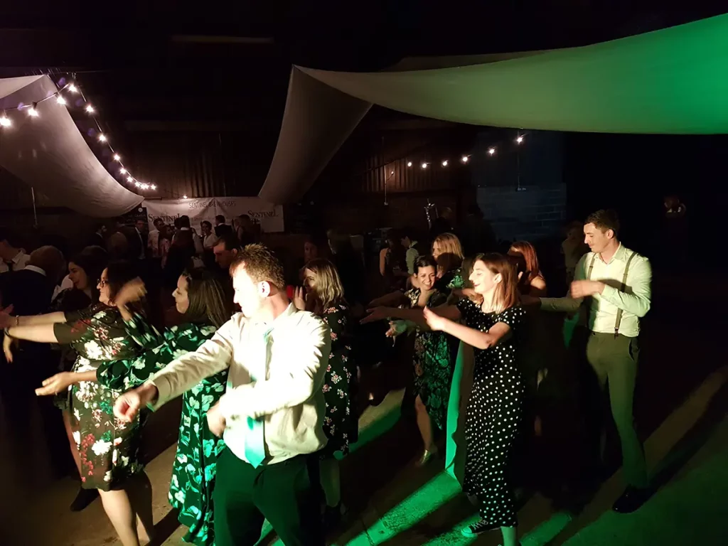 An unusual one this. The venue was a barn made of breeze blocks and corrugated iron on a farm on the outskirts of Sheffield. The so called “stage” was a narrow , raised concrete path that was probably intended to allow a farmer to more easily navigate a herd of cattle. Happily it also worked with wedding guests. The narrowness of the stage forced us to adopted what is known as the “firing squad” formation, with each so called musician, standing side-by-side in a row. Although this configuration can be made to work, it’s difficult for bandmates to make eye contact with each other and is therefore not ideal.
